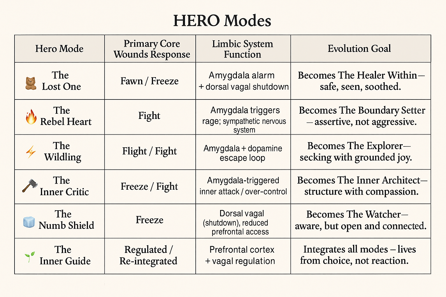 Core wounds RESPONSE MAPPING | HERO METHOD MODES & THE LIMBIC SYSTEM